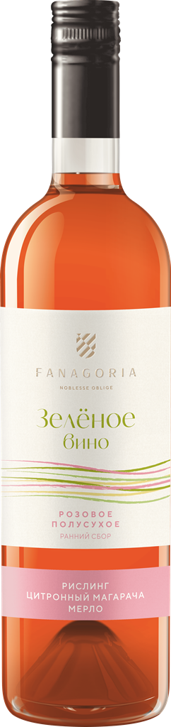 Зеленое Вино, Рислинг-Цитронный Магарача-Мерло — свежее и питкое розовое полусухое вино из винограда сортов Рислинг, Цитронный Магарача и Мерло, который выращивается на фанагорийских виноградниках Таманского полуострова, где виноград потрясающе раскрывает свой потенциал. Частичный ручной сбор урожая осуществляется по достижении ягодами оптимального уровня сахаристости и кислотности. Ферментация сусла-самотека протекает при температуре 14-18ºС. Брожение принудительно останавливается путем резкого снижения температуры для сохранения естественной сладости. Содержание остаточного сахара составляет 10 г/л.