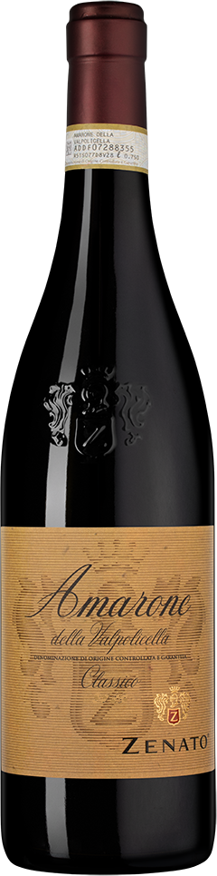 Amarone della Valpolicella Classico — великолепное красное вино от известного винодельческого хозяйства Дзенато. Его изготавливают из четырех сортов винограда: традиционных Корвина и Рондинелла и двух древних, возрождающихся в регионе — Кроатина и Оселета. Корвина ценится не только своим интенсивным ароматом с нотками вишни Мараскина, но его способностью восстанавливать прочность после процесса сушки. Используемая в небольших количествах Рондинелла также прекрасно показывает себя после сушки, вносит свой вклад в темный цвет и соблазнительный цветочный аромат. Оселета предоставляет вину дубильную структуру и минеральность, в то время как Кроатина добавляет определенную фруктовую "молодость" вкусу.
