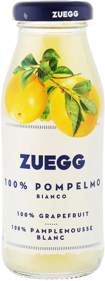 Zuegg, Pompelmo — натуральный грейпфрутовый восстановленный сок без добавления сахара, изготовленный из желтых грейпфрутов, выращенных в Италии. Сок обладает приятным цитрусовым ароматом и слегка терпким вкусом с естественной сладостью и легкой фруктовой кислинкой. Сок превосходен охлажденным в чистом виде, хорошо сочетается с десертами, может использоваться в коктейлях.