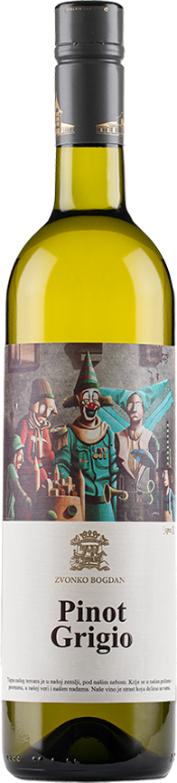 Zvonko Bogdan, Pinot Grigio — легкое, питкое белое сухое вино красивого золотистого цвета из винограда сорта Пино Гриджио. Виноград выращивается на собственных виноградниках компании в Радиче. Климат и уникальная почва виноградников, раскинувшихся на площади около 4 гектаров, придают вину особую сложность и индивидуальность. Когда-то на месте виноградников лежало Паннонское море, поэтому их почвы представляют собой смесь извести, глины и силикатного камня в более глубоких слоях. Благодаря обилию солнечных дней (более 2000 часов в год), постоянным слабым ветрам и значительным перепадам суточных температур виноград идеально созревает, сохраняя свою свежесть. Урожай собирают вручную по достижении ягодами оптимальной спелости. Ферментация протекает при строгом температурном контроле в нейтральных емкостях. Перед бутилированием вино выдерживается на тонком осадке в больших бочках объемом 2500 л на протяжении 6 месяцев.