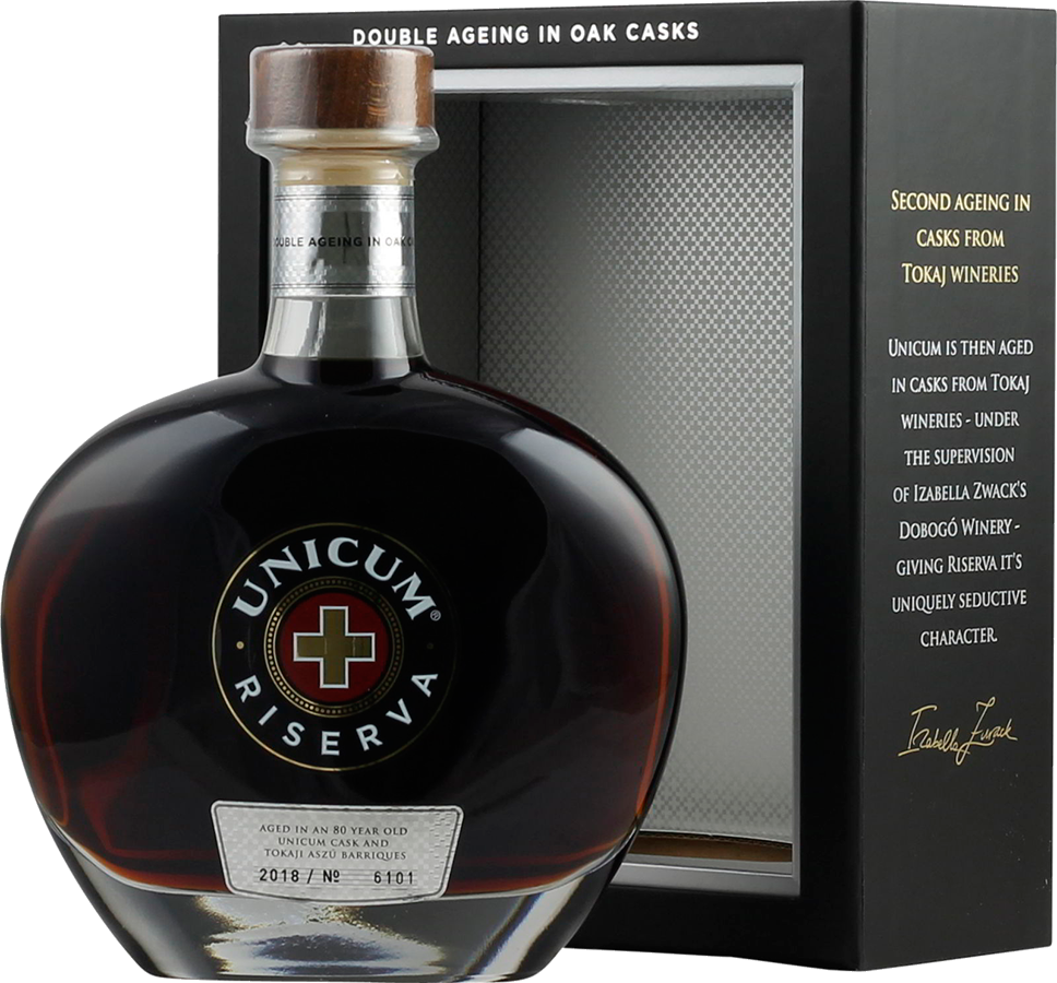 Ликёр Unicum Riserva - первый ликер категории super premium. Особенностью является выдержка ликера в большой 80-летней бочке, что делает напиток еще уникальнее. Эта процедура наделяет ликер неподражаемым характером.